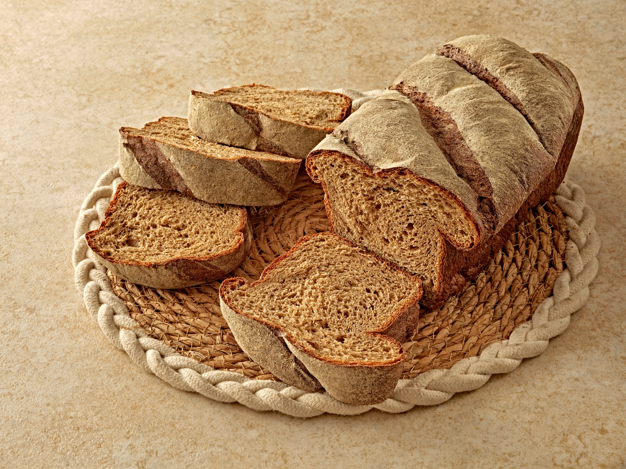 Nutritious bread with 210 calories per slice and 12 slices per loaf.